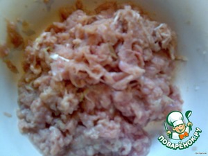 Соединить фарш мясной с грибным, добавить яйцо, соль, перец, приправу для курицы. Все тщательно перемешать.