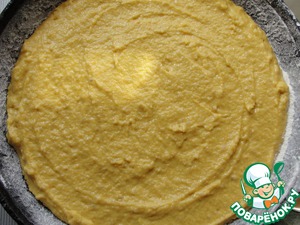В миску с мукой (1,5 стак.) насыпаем 1 ч. л. соды по всей поверхности и перемешиваем с содержимым блендера, добавляем розовое масло, мешаем. Выкладываем тесто в форму для выпекания диаметром 28 см, смазанную растительным маслом и присыпанную мукой, и ставим в духовку, разогретую до 200 градусов на 15 минут.