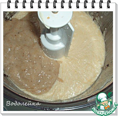 • Добавляем банановое пюре к яично-маслянной смеси. Хорошо перемешиваем.