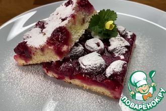 • Сверху выливаем тесто и ставим в разогретую до 150-160 градусов духовку. Выпекаем до готовности минут 40-50.