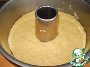Как тесто подошло, переложить в форму ( лучше использовать форму с трубой). Накрыть полотенцем и дать подняться.