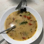 В следующий момент я поняла, что этот тазик - мой заказ. От огромной тарелки необыкновенной красоты (я ее перед отъездом выпросила у повара, пардон, ШЕФ-повара), шел пар, которым самим можно было пообедать - густой, пахнущий божественными специями туман. Унюхала только мускатный орех, остальное - тайна. Из тумана выплылы пред мои очи толстенькие кораллово-белые креветки, упругие шоколадные мидии, кусочки чего-то непонятно - вкусного на вид, щупальца маленьких монстров, длинные широкие макароны и кремовый соус.