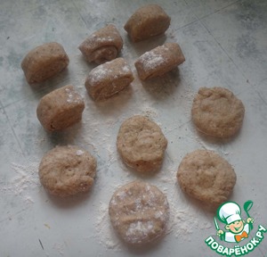 Тесто и сформованные порции поднимаются не столь сильно, как при применении только пшеничной муки в исходном рецепте: увеличение объема происходит всего в 2,5-3 раза, а не в 4-5 раз. Что, однако, почти не влияет на воздушность теста в готовом изделии.