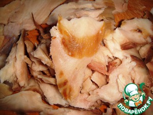 - я удалила кость и разобрала на крупные ломтики (несколько ломтиков отложила для украшения)