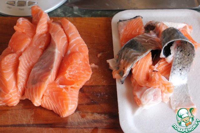 - Рыба (Стейк семги или лосося по 200г) — 2 шт