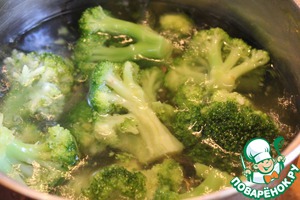 Брокколи отварить в подсоленной воде около 3 минут, откинуть на дуршлаг и ополоснуть холодной водой. Отберите два красивых соцветия, остальное порубите не очень крупно.