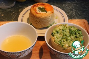 На дно полусферической формы, которая немного больше формы где запекалось суфле, наливаем 1 см желейного состава и убираем в морозилку для застывания.