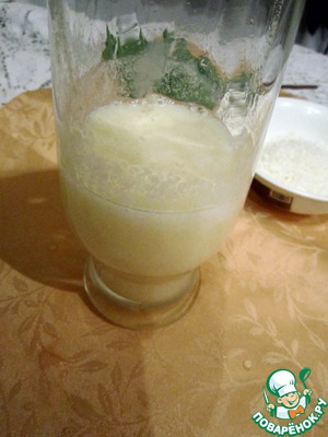 Сахар растеретьс апельсиновым соком и добавить ликер. (Тут у меня вышла незадача-апельсиновый ликер в наших магазинах не водится, пришлось заменить кокосовым).
