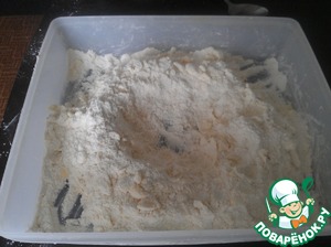 - Мука пшеничная / Мука (может потребоваться еще чуть чуть - муки я добавляю по требованию, если вижу, что тесто слишком жирное и мягкое) — 2 стак.