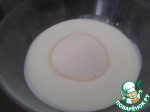В йогурт добавляем сахар и взбиваем блендером.
