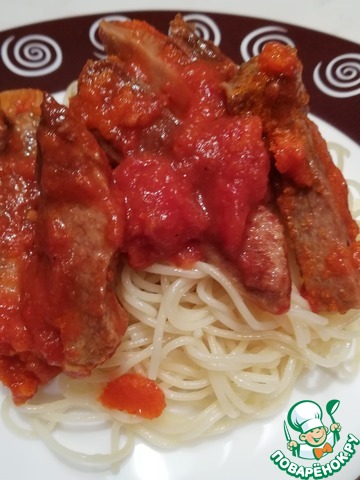 Однако, спустя 10 минут варки почистить шкуру у меня не получилось. Поставила вариться ещё на 2 часа, добавив в воду перцы и лавровый лист, не солила. Потом остудила и очистила, ещё час тушила в томатной пасте, тогда уже добавила соль. На тушение ушло так много времени, потому что язык был жестковат. Видимо, наилучший способ - отварить язык до готовности и затем тушить в соусе минут 10.