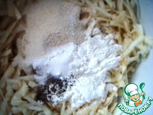 Туда же 1 столовую ложку кукурузного крахмала и соль-перец