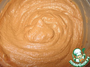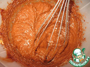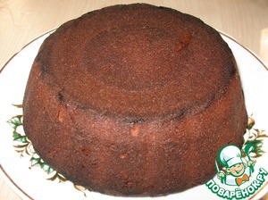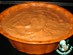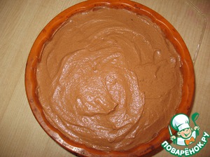 Это должно быть что-то шоколадное! Можно растопить шоколадку и полить - это проще всего и обалденно вкусно! Я же в данном случае поливала кремом: один стакан холодного молока взбила с 1/4 стак. муки и 1 ст. л. сахара; поставила на огонь и, постоянно помешивая, хорошо нагрела; затем добавила 100 г сливочных мягких ирисок, нарезанных предварительно на кусочки; постоянно помешивала, пока ириски полностью не растопятся; затем в горячую массу добавила три столовые ложки какао-порошка и 50 г сливочного масла; варила, помешивая, до загустения. Вот этим кремом я полила наш тортик.