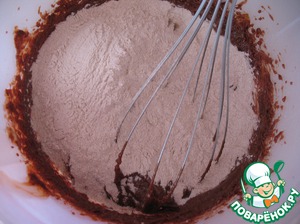 Постепенно всыпаем муку, тщательно при этом перемешивая.