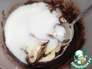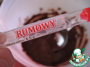 Добавляем в наш шоколад ром (воду) или, как я в данном случае, водичку и капель пять ромовой эссенции.
