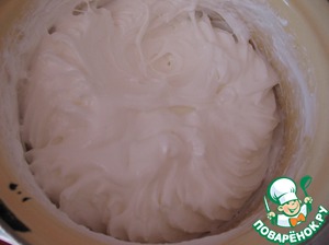 Взбиваем белки до крепкой пены с оставшимся сахаром и щепоткой соли.