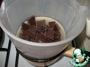 Теперь нужно растопить наш шоколад на водяной бане. Водичка не должна касаться дна ёмкости, в которой шоколад.