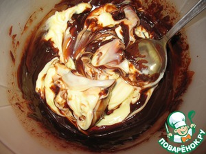 Постоянно помешиваем шоколад, пока он полностью не растопится. Немного охлаждаем, чтобы он стал чуть тёплым.