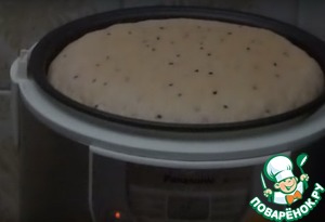Поставить подходить в мультиварку, смазав предварительно чашу растительным маслом, выключив подогрев. Дать тесту подойти 40 минут. Потом включить в мультиварке режим "подогрев" на 15 минут. Тесто поднимется за это время.