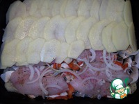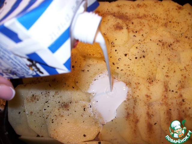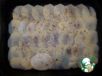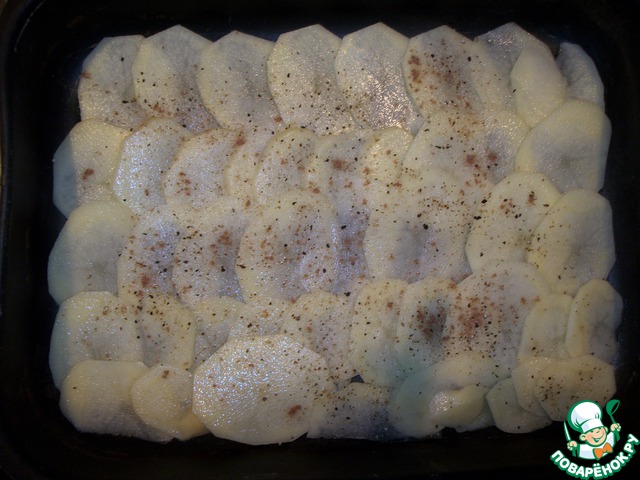 ... и укладываем поверх картошечки. Потом солим-перчим-мускатным орехом-посыпаем... |