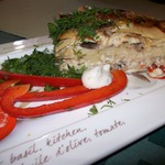 Помню только, что приехала домой и поняла, что что-то нужно готовить - на плите пусто. Выгребла из шкафа и холодильника все, что было, и родилось блюдо, которое с тех пор называется "мамина запеканка". Спустя много лет, когда я была в Италии, я попробовала это блюдо в исполнении шеф-повара маленького ресторанчика гостиницы "Рома". Это было то самое блюдо, в нем не было только одного ингредиента, который я добавила для того, чтоб еды было побольше. Вот оно, блюдо от шеф-повара итальянского ресторана.