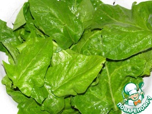 Листья шпината промыть и хорошо обсушить. Удалить стебли.