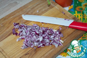 Половинку луковицы мелко порезать.