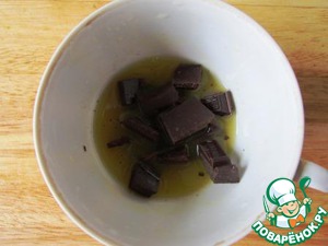 Из остатков апельсина выжать сок в чашечку, добавить кусочки черного шоколада и растопить в микроволновке до однородной массы.
