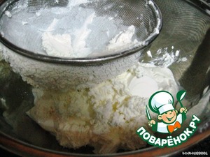 А в это время готовим наполнитель. Смешать творожную массу, сметану, творог (рекомендую протереть через сито), пудинг, сахар.