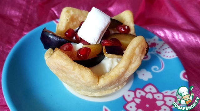 Корзинки из слоеного теста с очень простым кремом и с фруктовой добавкой. Наш девиз: Тяжело на кухне, вкусно за столом. badboy