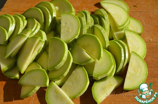 Молодые кабачки вымыть и нарезать кружками или полукружками. Кожицу я не очищала - она до того нежная и тонкая у молодых кабачков и, к тому же, помогает им держать форму при обжарке.