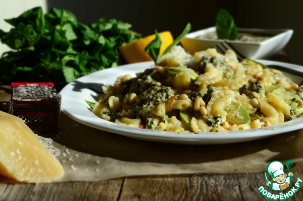 Рецепт «Итальянская паста с молодыми кабачками и мятным песто»: