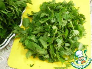 • Слегка просушенную крапиву нарезаем. Мелко нарезать не обязательно, мы ее будим тушить.