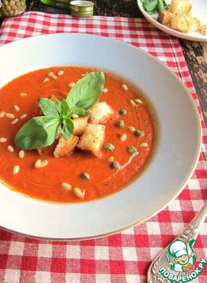 При подаче добавьте хрустящий хлеб, каперсы (или маслины), кедровые орехи и базилик, а также заправьте суп ароматным оливковым маслом (1-2 ч. л. на порцию).