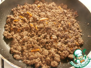 Положить в сковороду фарш, хорошо размешать, чтобы не было комков,