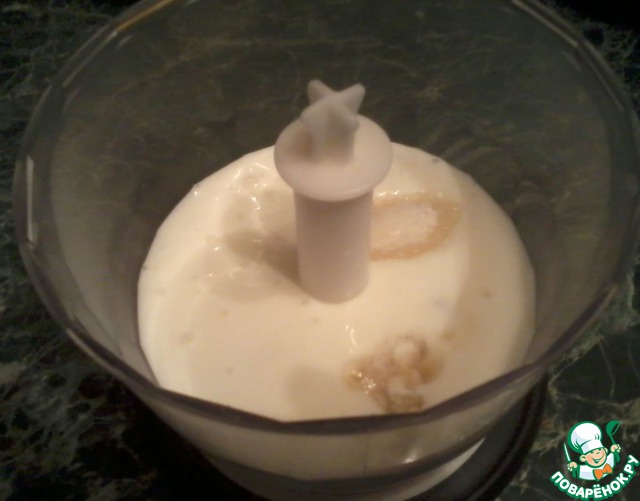Затем добавить к этой массе вторую половину горячего раствора желатина- размешать ложкой или взбить в блендере 10 сек.