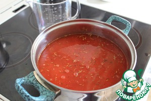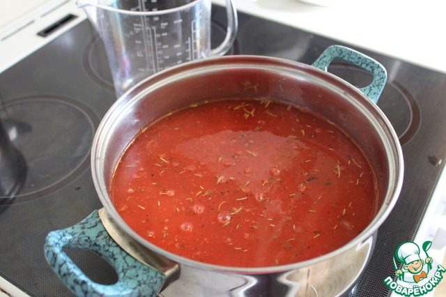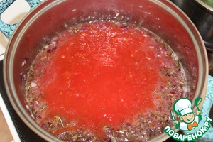 Добавьте в кастрюлю пассату и помито и прогрейте, помешивая, 2 минуты.
