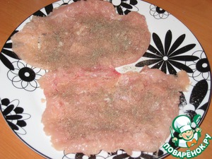 Куриную грудку хорошо отбить, посолить, поперчить.