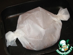 Выложить рулеты в смазанную маслом бумагу для выпечки, запаковать и поставить в духовку примерно на 1 час при температуре 200*С.
