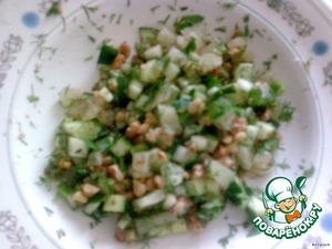 Огурцы, ананасы,орехи, зелень смешать. посолить немного.