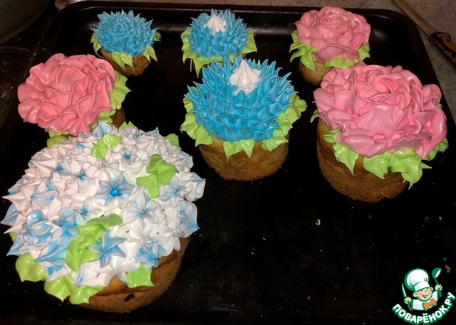 Украшаем глазурью и присыпкой (можно разноцветной кокосовой стружкой).