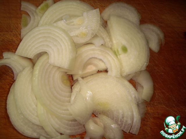 Пока готовится, очистим луковицу, нарежем полукольцами