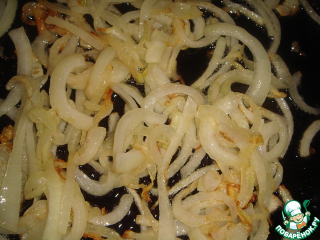 Обжарим наш лук до золотистого цвета в оливковом масле (1 столовая ложка)
