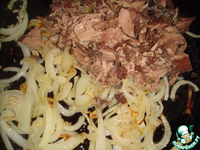 Добавим его к обжаренному луку, будем готовить еще 3 минуты