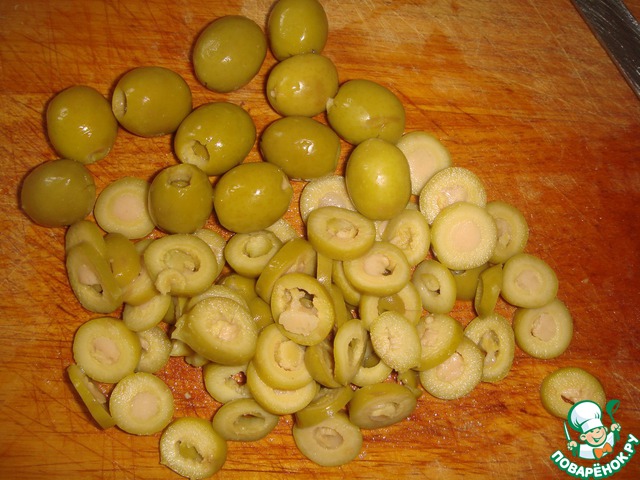Оливки нарезать кружочками