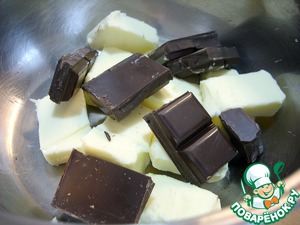 Количество ингредиентов расчитано на прямоугольную форму размером 10х30 см. Растопим шоколад со сливочным маслом на водяной бане (я давно приловчилась и плавлю на маленьком огне).