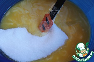 В растопленый маргарин добавим 200гр сахара, перемешаем.