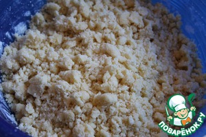 Затем добавляем разрыхлитель, муку. Получается такая крошка.