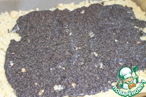 Теперь надо распределить наш мак по всей поверхности. Можно вместо мака взять и другую начинку, например мандарины из банки или варенье. Это все на ваше усмотрение.