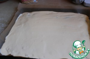 А теперь сверху выливаем нашу пудинговую начинку. Разровняем ее.